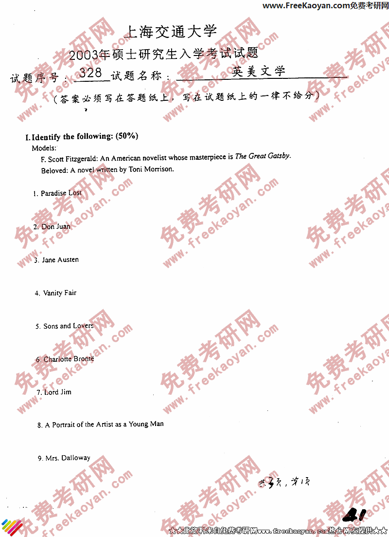 上海交通大学2005年英语水平考试专业课考研真题试卷